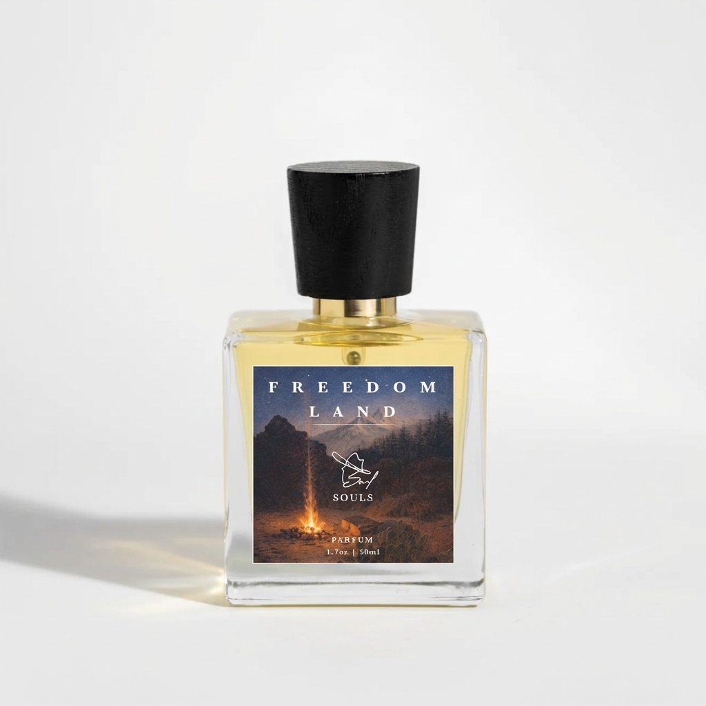 Freedom Land captures that spirit—raw woods, cool air, and grounded depth—refined into a fragrance of quiet power and uncompromising elegance.
